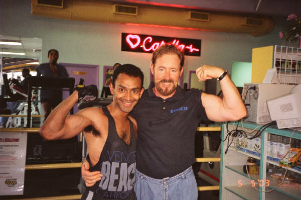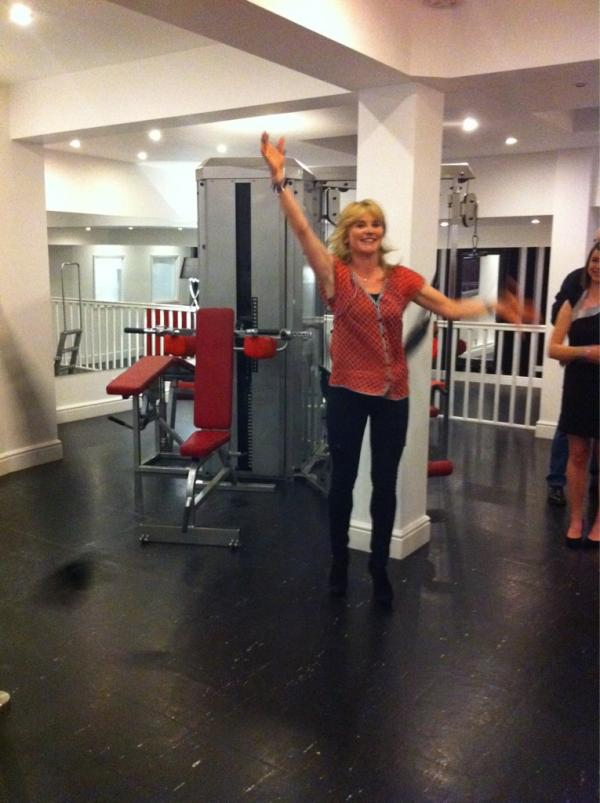 The photo appears to show Anthea Turner talking with Jagir Singh (Jagir Shah), another EducoGym proprietor.