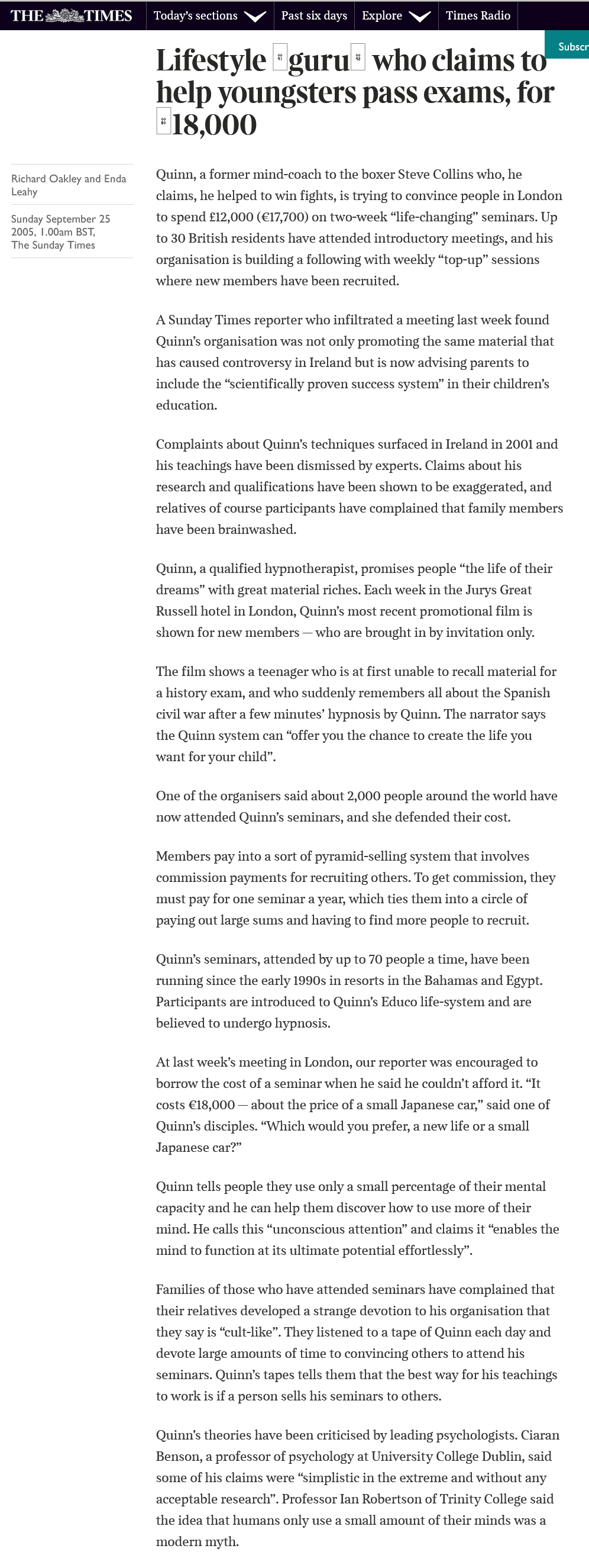 In 2006 The Sunday Times reported (No-paywall) on a similar event that an undercover Reporter “infiltrated”. The Sunday Times reported the EDUCO messianic Cult were planning on expanding in the UK and to target children for it’s form of hypnotherapy.