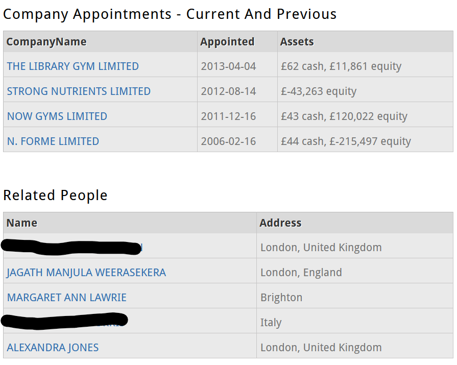 Morris’ companies are also linked to Manj Weerasekera, Alexandra Jones (Alex Weerasekera) and Maggie Lawrie.