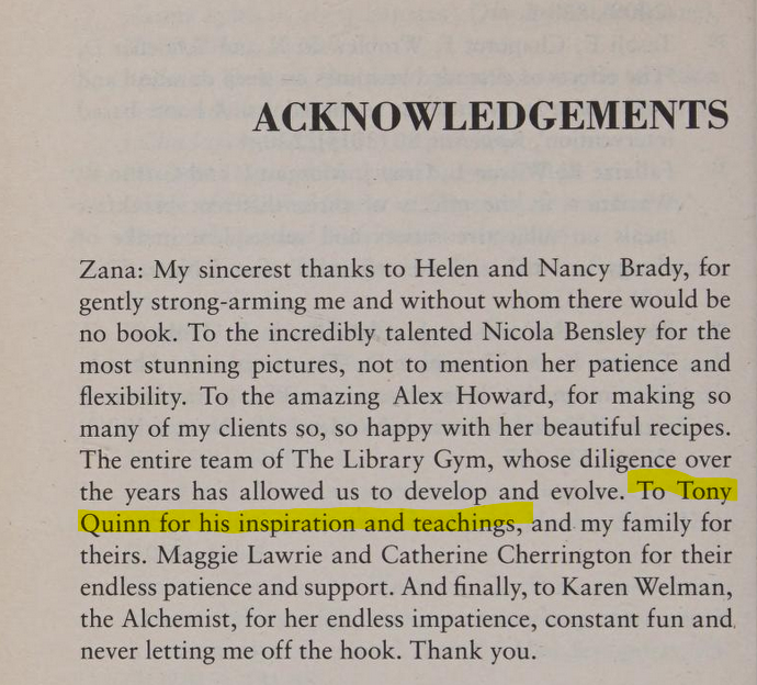 In the book Morris acknowledges her guru “Dr” Tony Quinn before her own family: